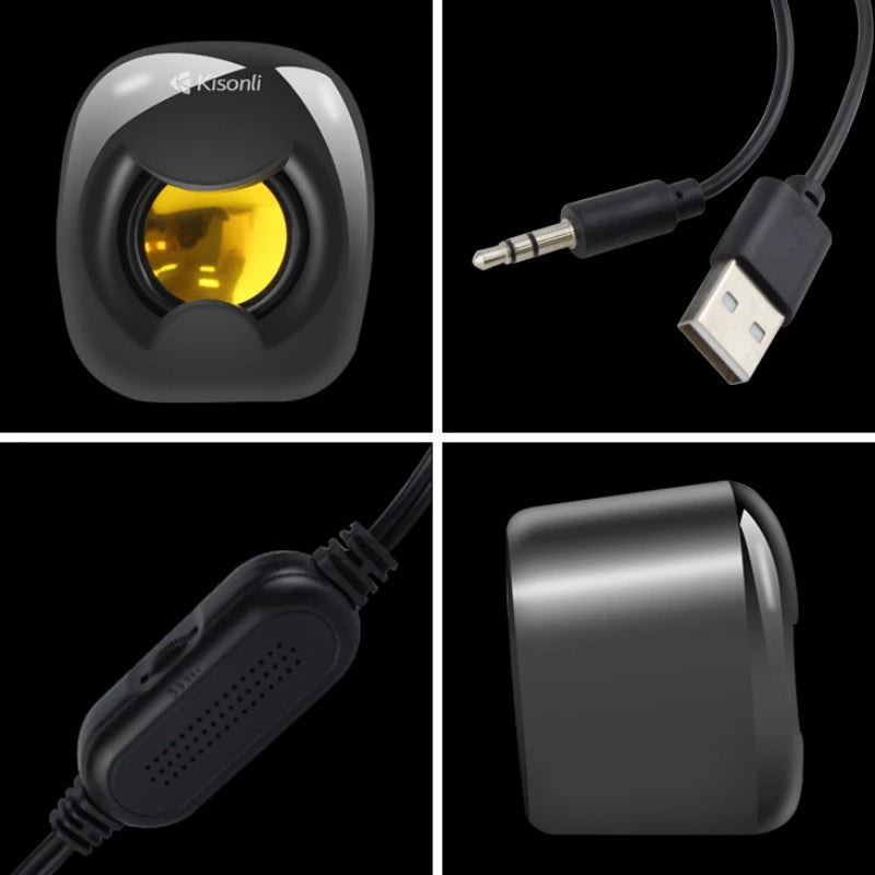 Kisonli A-202 Compact Stereo USB 2.0 PC Speakers with Deep Bass and AUX Input