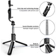 R1S 4-in-1 Wireless Bluetooth Selfie Stick Tripod with LED Fill Light and Detachable Remote, Extendable to 70cm for All Phones, Portable Stand for Live Streaming, Vlogging, and Travel